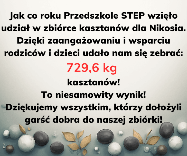 Z życia przedszkola Zbiórka kasztanów Dziennikarz Stepek 3 listopada 2025 Previous Next Najnowsze wpisy Z życia przedszkola Listopadowe koncertowanie Z życia przedszkola Zdrowy kręgosłup i pilates Jeżyki Święto Niepodległości w grupie Jeżyków